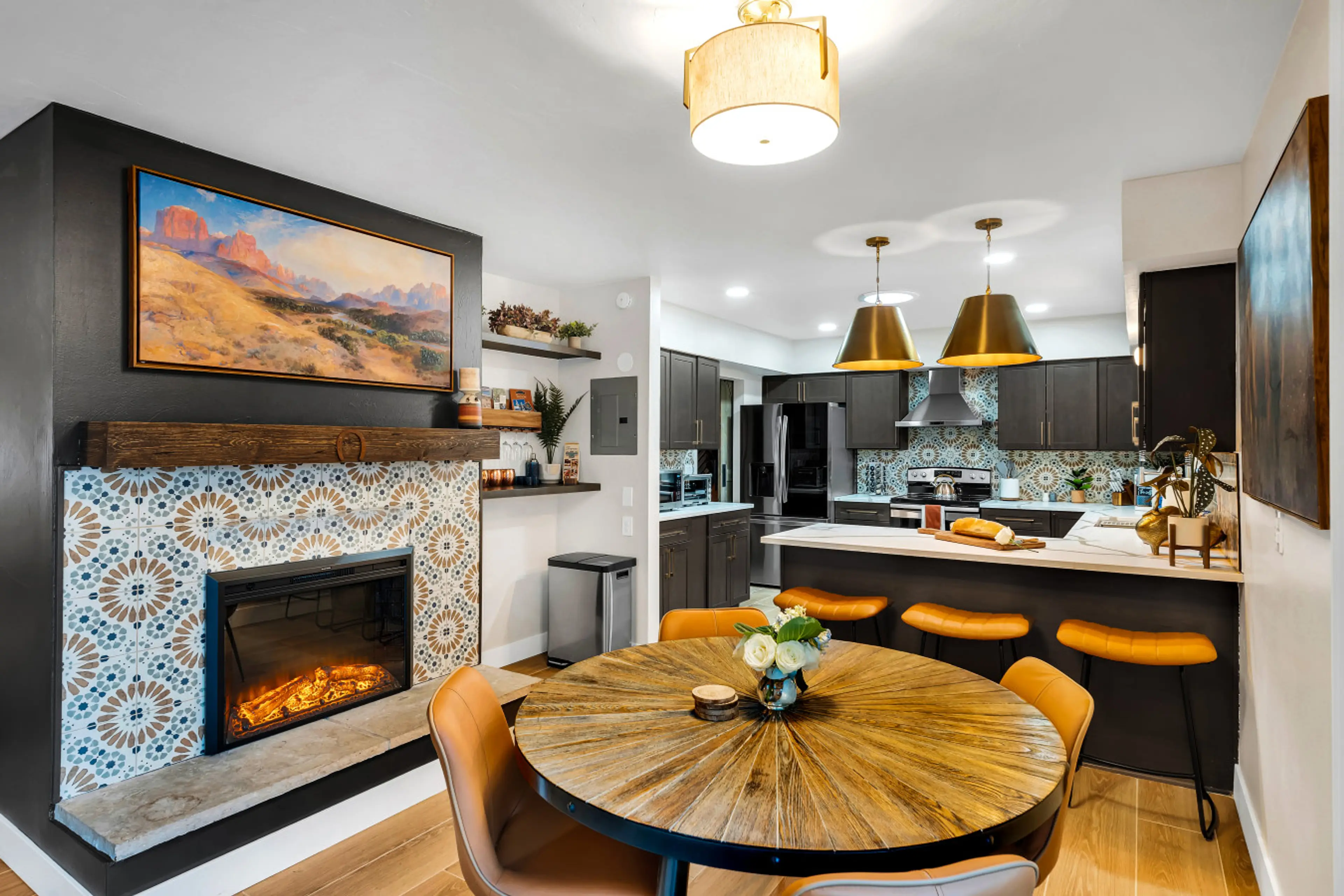 Where Western chic meets 5-star comfort - Welcome to one of Tucson’s top-rated homes. Just a block from U of A and Arizona Inn, this pet-friendly, fully remodeled retreat features luxe finishes, chef’s kitchen, spa-style baths, Smart TVs, plush beds, fire table, record player, driveway parking, high...
